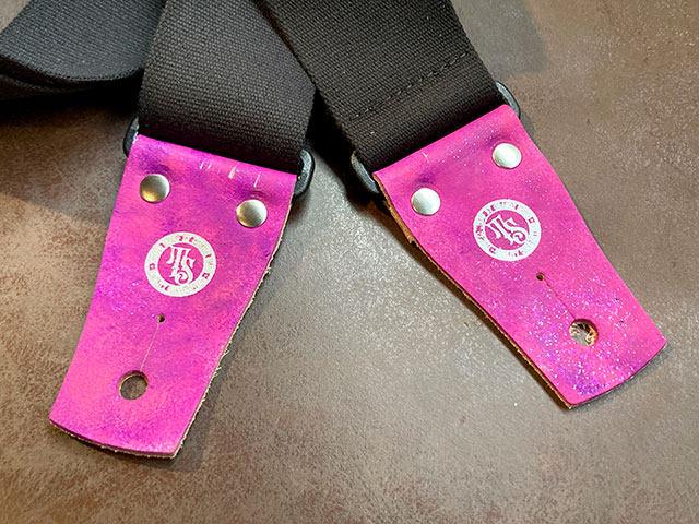 ストラップ本体の素材には柔らかくて肩への馴染みの良いアクリル製を使用し、ベルト調整のバックル部分にはギターを傷つけにくいプラスティックパーツのものを採用しております。可愛さとは裏腹に、使い心地は最高です。