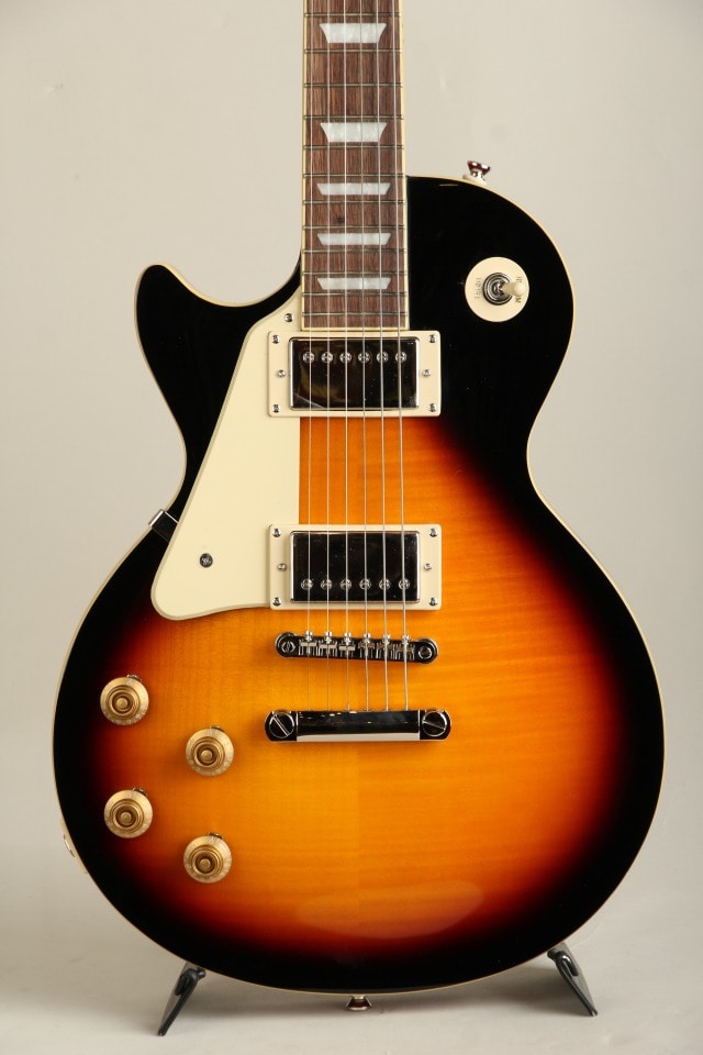 50年代に登場したオリジナルのレスポールを可能な限り再現しており、メイプルトップのマホガニーボディ / マホガニーネックといった伝統的なウッドマテリアルに加え、チューン・O・マチックブリッジ、テールピース、ピックガードなど、レスポールを構成するうえで欠かせないパーツが搭載されております。ギブソン製品を象徴する外観面での装飾としてボディとネックのバインディング、インレイなども余すことなく再現いたしております。長年続いていたヘッドストックの変更と共に、ネックグリップや細部の仕様、カラーリング等様々な面をリファインしさらにGibson USAに近づいた再現度の高いモデルへと進化しています。