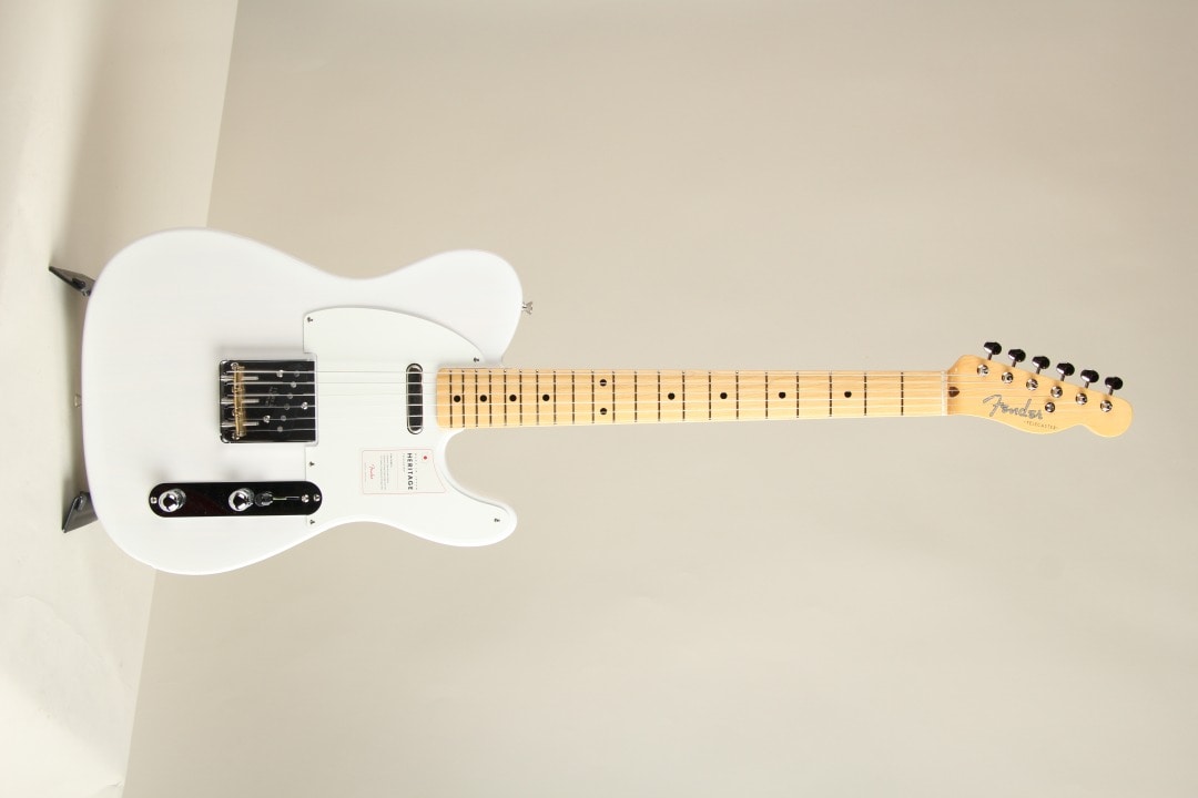 Made in Japan Heritage 50s Telecaster?はアッシュボディにラッカーフィニッシュを施し、使用年月と共に色合いに深みが増します。21本のヴィンテージスタイルフレットを装備した7.25インチラジアスの1952 “U”シェイプメイプルネック、ブラス製バドル付き3サドルヴィンテージスタイルString-Through-Bodyブリッジ、そしてHeritageシリ ーズのために特別に選定されたピックアップなど、本製品を構成するすべての仕様はクラシックなプレイアビリティと甘いヴィンテージトーンを実現するためにこだわり抜かれています。