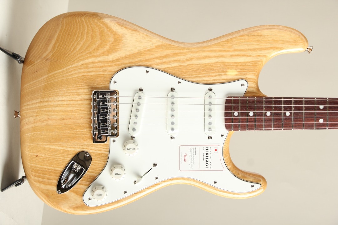 70's ヴィンテージを再現し、アッシュ材の杢目が美しいナチュラルカラーのグロスフィニッシュを施したHeritage 70s Stratocasterでございます。