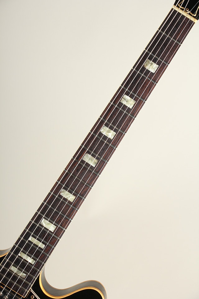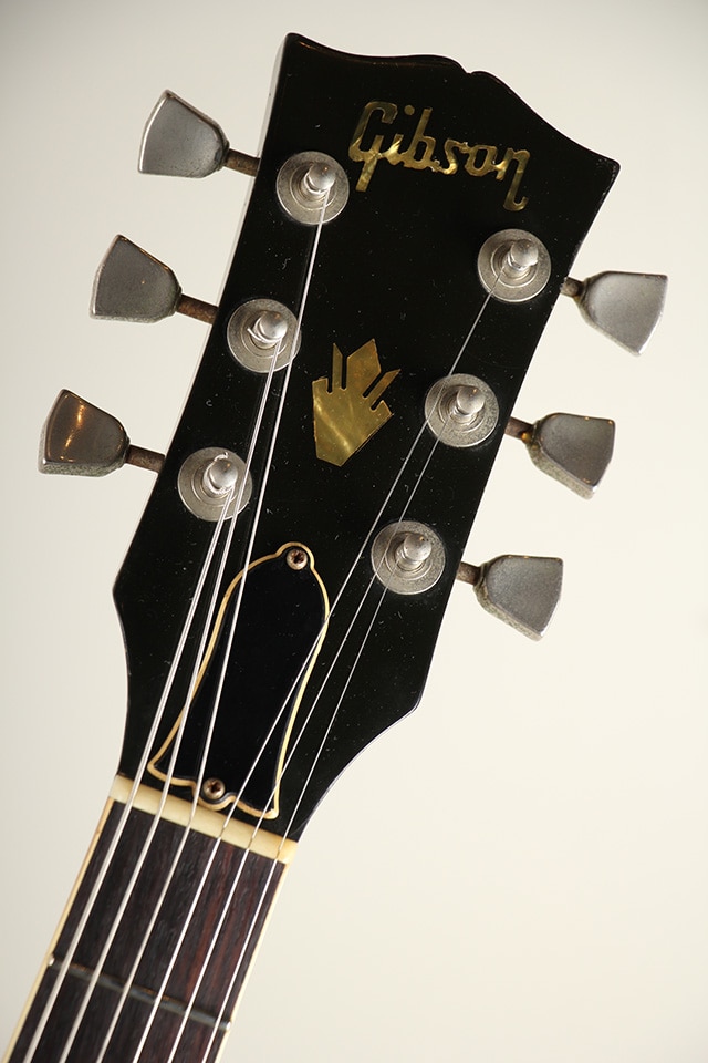 70年代後半らしくハイテーパーで薄めのネックシェイプにボリュート付きヘッドにこの時期特有のボディ内の空洞が大きめな構造から、豊かな生鳴り、そのアコースティック感も持ち味の年代です。エアー感の中に音像のクリアな透明感のある響き、立ち上がりや反応も申し分なく、押し出しの強い芯のしっかりとしたグッドサウンドを聞かせてくれます。