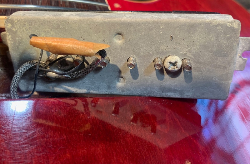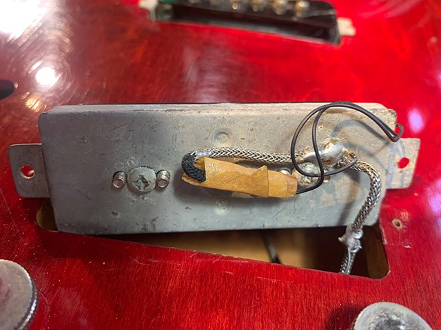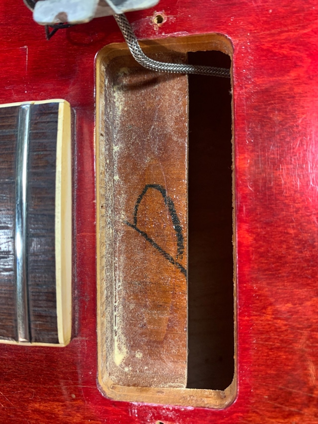 経年から塗装チェッキングやある程度キズは見られますが年式からして良好な状態です。ポット4つが83年製CTSに、コンデンサーはレプリカブラックビューティーに交換。ネック、トラスロッド周りも良好で、フレット残りもありプレイコンディションも良好です。チップボードケースが付属します。