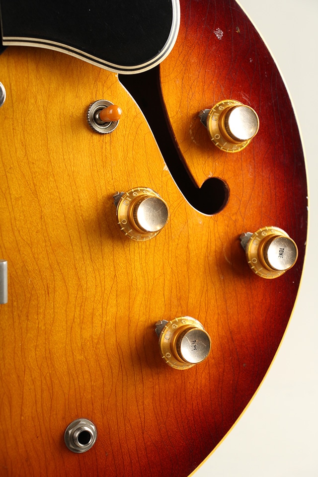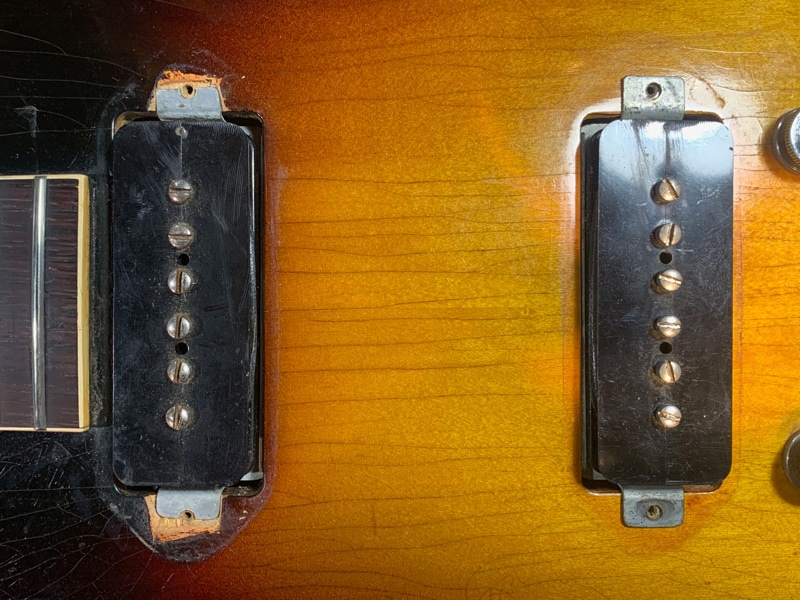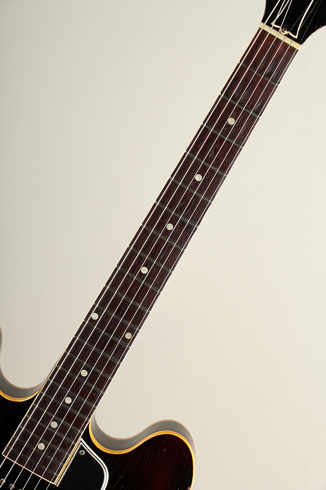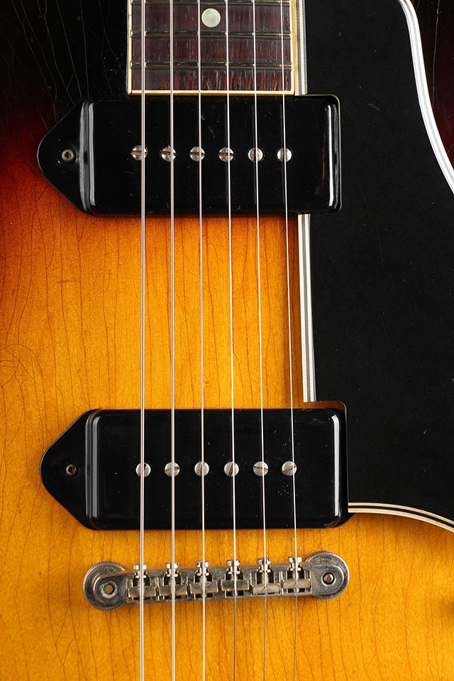 完全ホロウ構造にP-90の組み合わせは50sギブソンのフルアコES-125やES-175などでおなじみで実に素直なトーン。抜群の生鳴りから生まれるサウンドは、ホロウ構造ながら非常に素早く立ち上がり、タッチに対してのレスポンスも申し分ありません。程よい空気感をまといながらも、この年代特有の芯の太い音像とその存在感は素晴らしいの一言です。