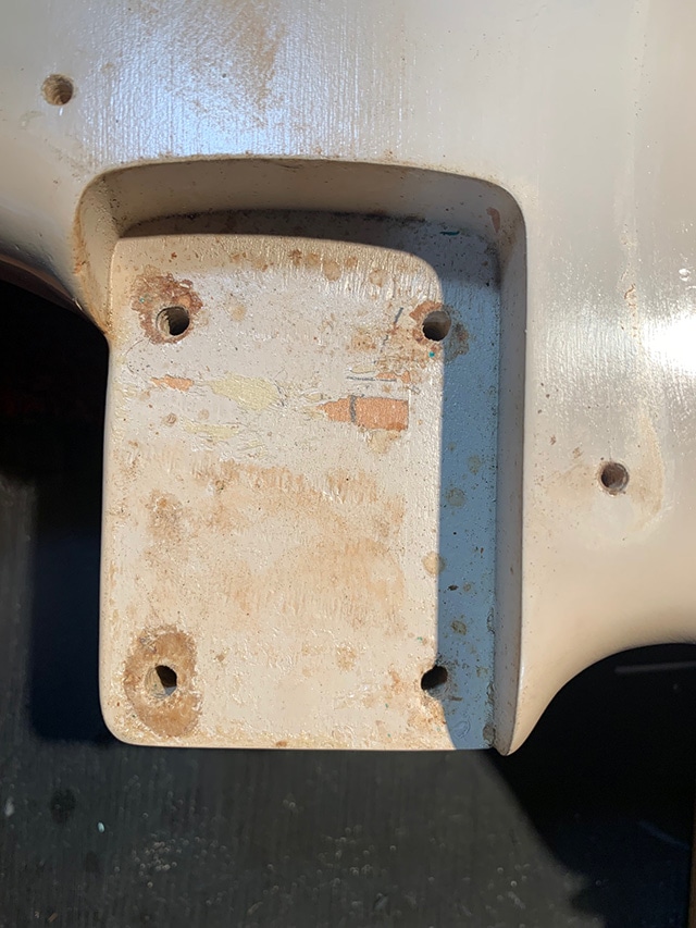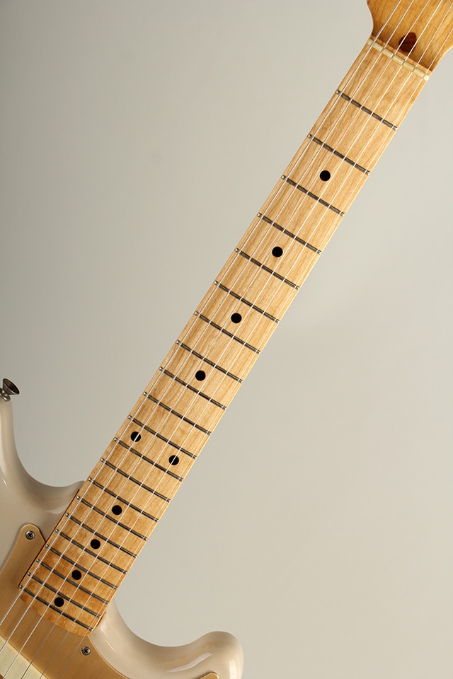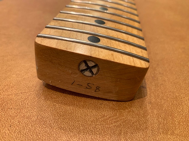 ワイドな42mmのナット幅にこの年代ならではのVシェイプが特徴のメイプル1ピースネック、アノダイズド・ピックガード期の1958年製です。