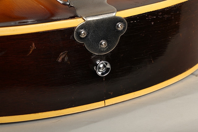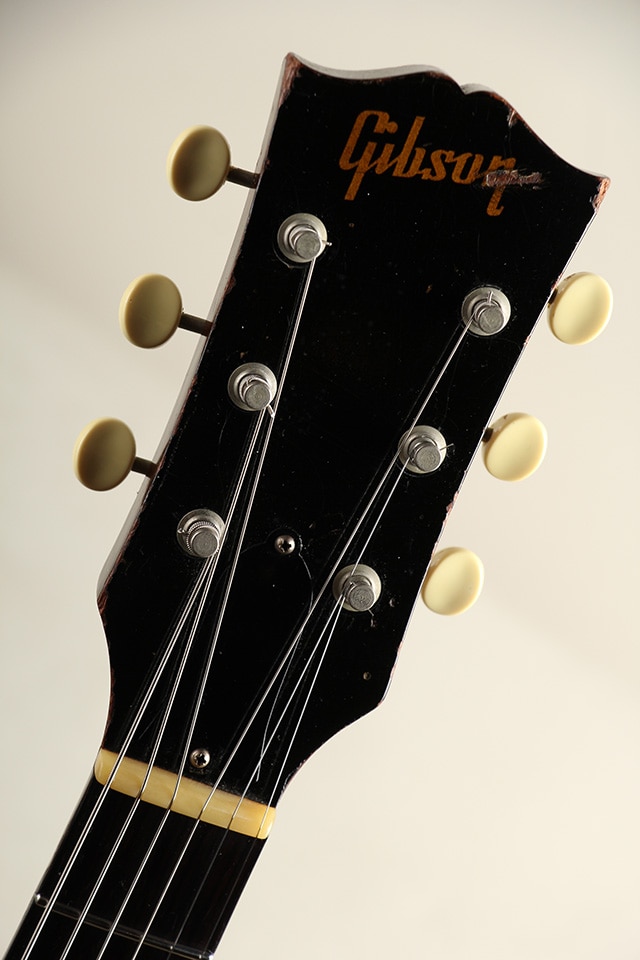 経年からキズや塗装チェッキング等は見られますが年式からして良好な状態です。ストラップピン位置変更、ブリッジ、テイルピース(一部欠け有り)、ペグ、ノブ等が交換。ネックコンディションも良好でトラスロッド周りも良好で、リフレット&リナットされ残りもあり演奏面も良好です。汎用ハードケースが付属します。