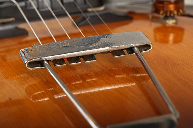 当機はノンカッタウェイにディープボディ、ファットネックにワイドナット、17度ヘッド、1ピックアップ仕様の1958年製ES-125です。
