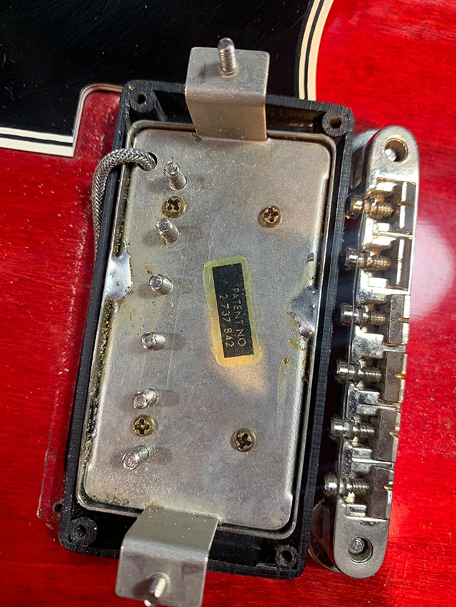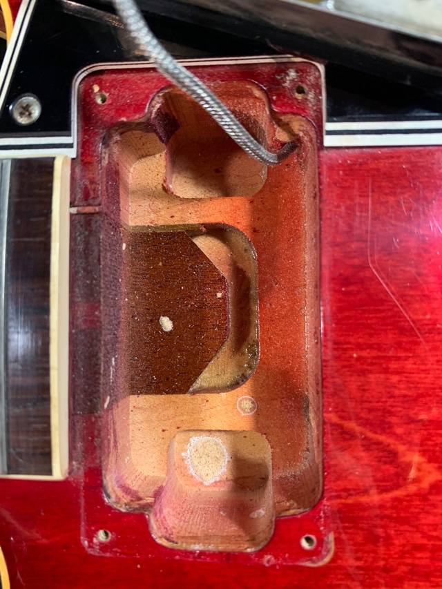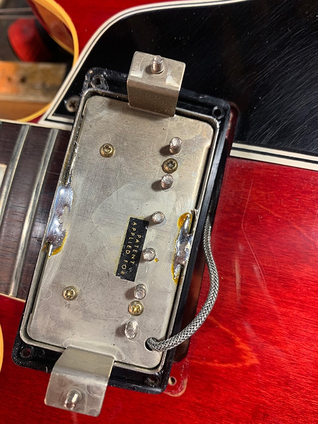 ミッキーマウスホーン、1弦側解放の無いリアピック側センターブロック、ブロックポジションマーク、1963年製ES-335TDCの入荷です。