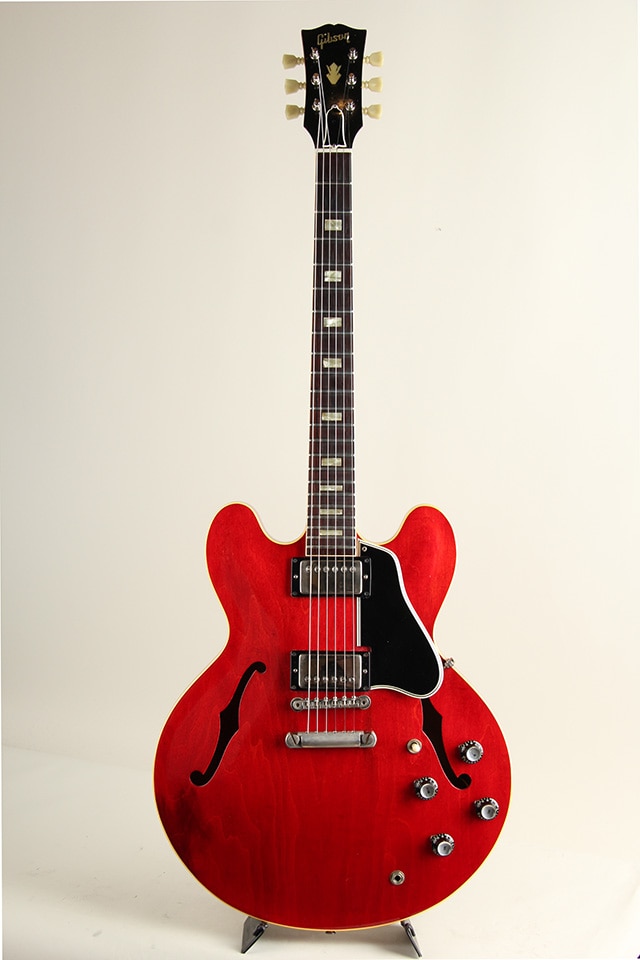 フロントにPAF、リアにナンバードPAFを搭載。335の醍醐味である空気感のあるスイートさに加わるエッジの効いたサウンド、クリアでありながらも図太い音圧感は、瞬時に立ち上がる反応の良さを持っており、メローな一面とパンチのある力強さが見事に合わさったサウンドは素晴らしいの一言です。