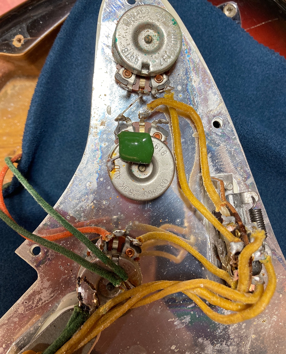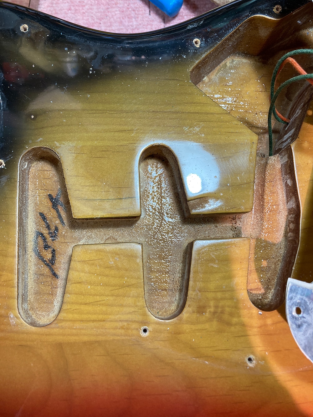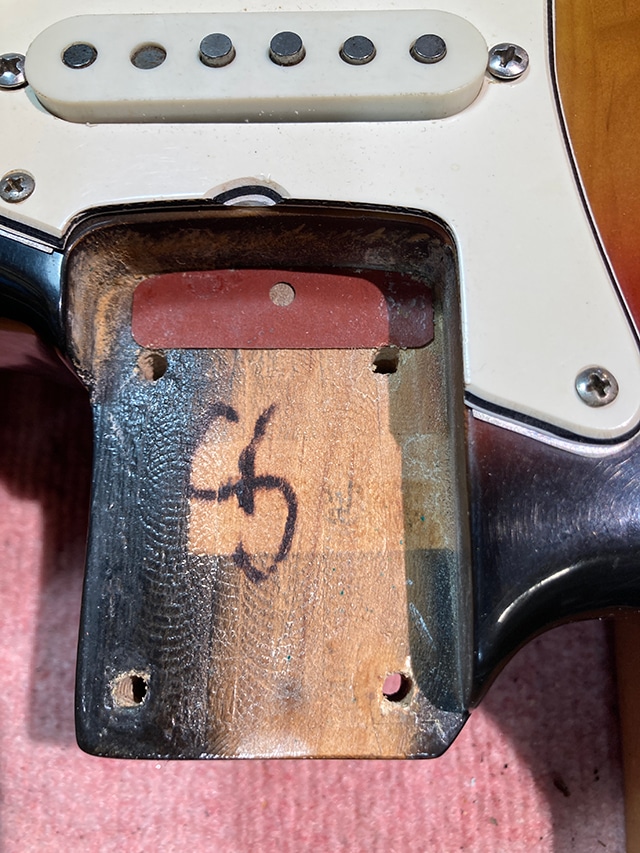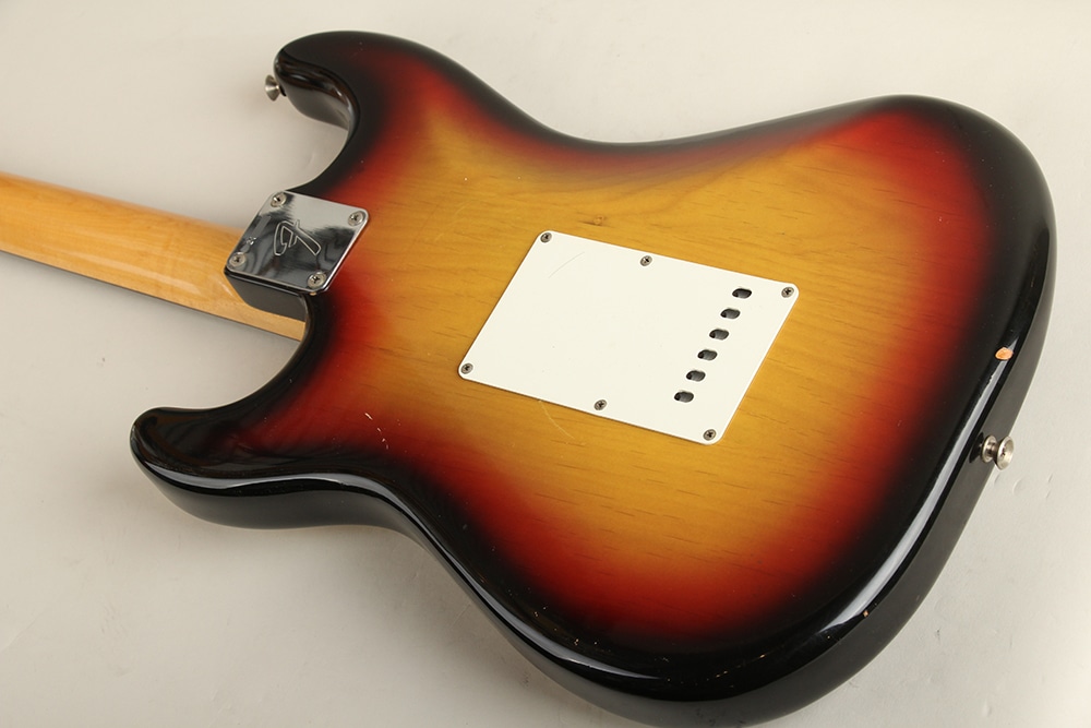 少しのキズ程度は見られますが年式からしてサンバーストの赤みや塗装面の艶も残っておりとても良好な状態です。