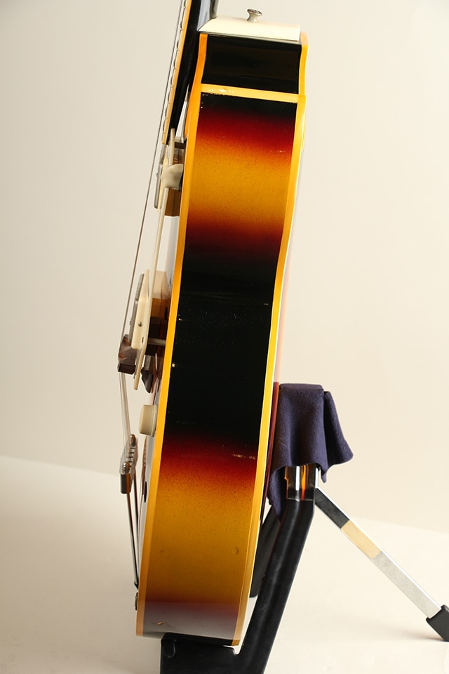 当機は50年代中期の2,3年のみ生産された中期仕様にあたる時期で、ES-175サイズのボディのフルアコモデルです。Belaireは当時のGibson社からES-175のボディを購入し、自社でネックやそれ以外のパーツを組み込み生産されていました。