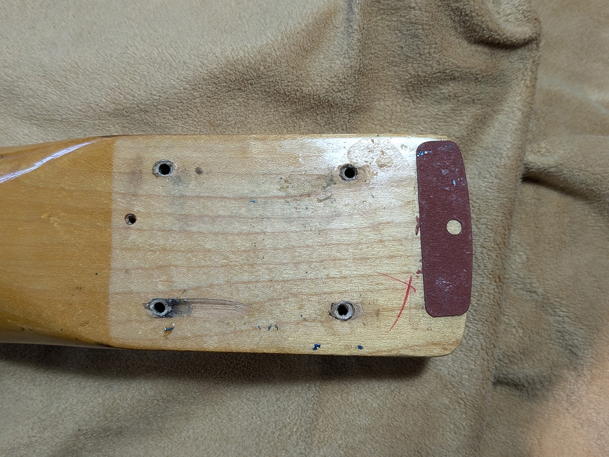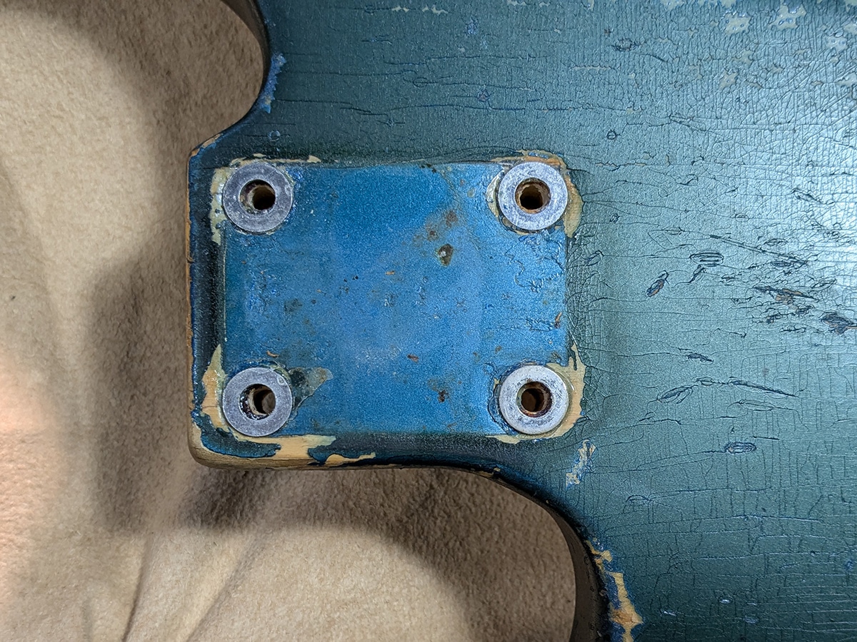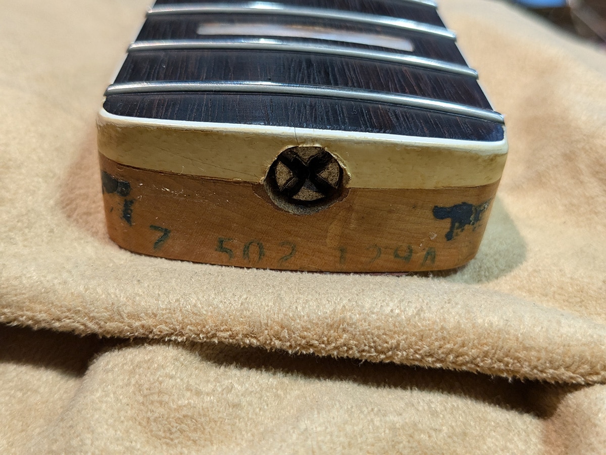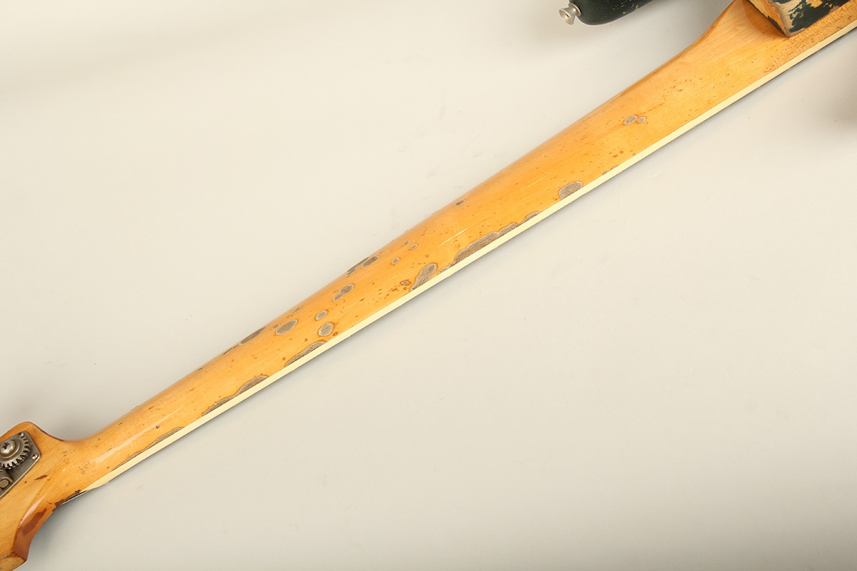 状態としましてフレット/ナット、ブリッジ、ペグポスト×2等が交換。ジョイントプレート下のボディ側にワッシャーが接着されております。年式相応にクラックや打痕、塗装剥げ等の弾き込まれたビンテージらしい貫禄の風貌ですが演奏面は良好な状態をキープしております。ネックコンディションは良好でトラスロッドの余裕もあり、フレット残は8割程となっており演奏面も良好です。