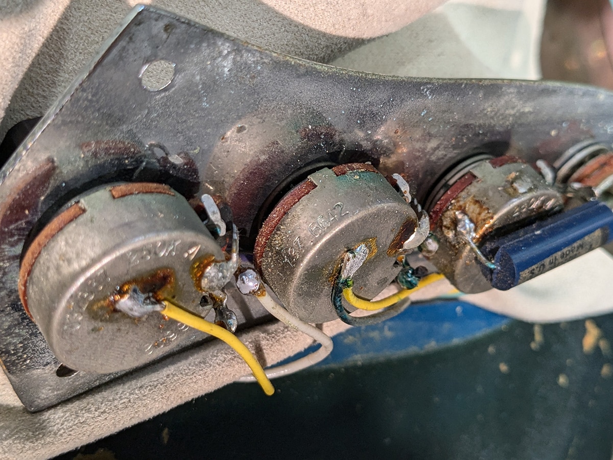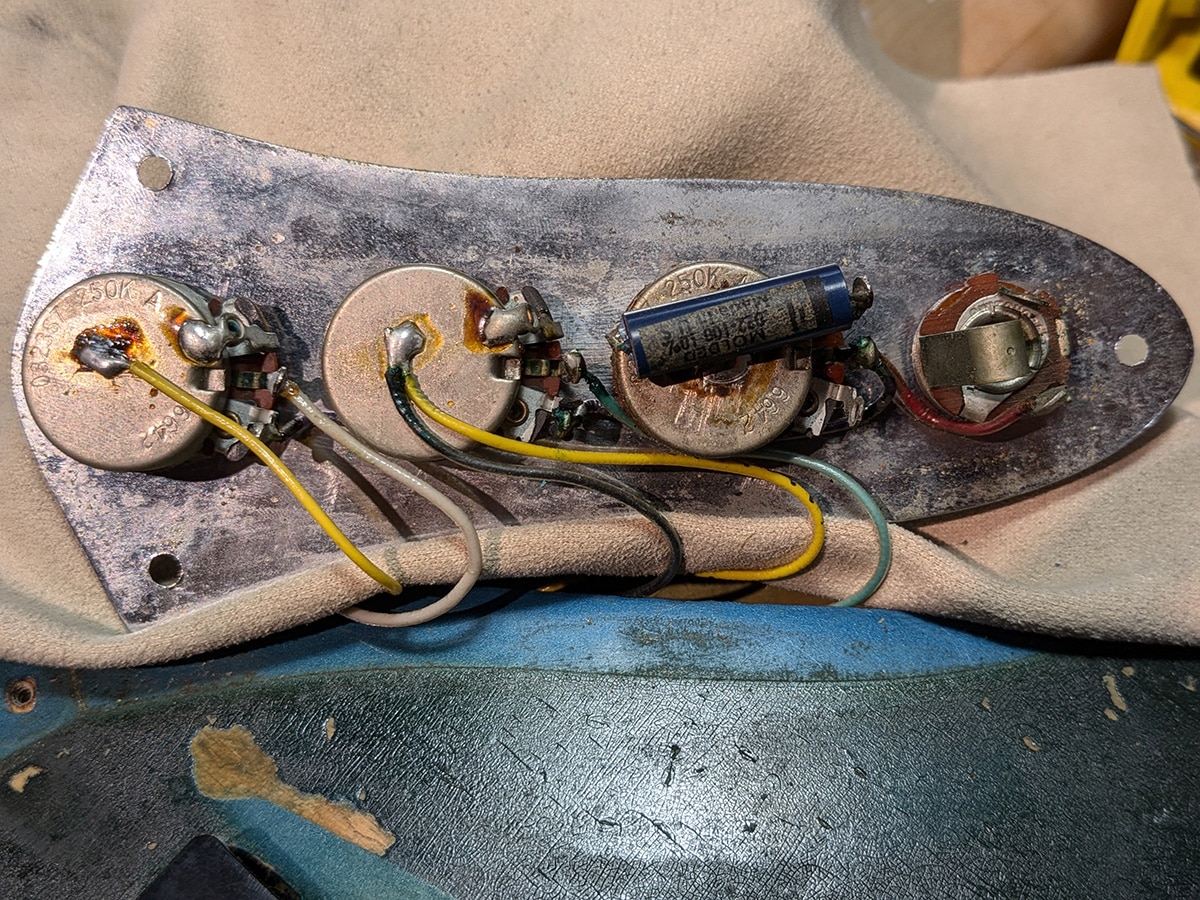 アルダー/ローズが織り成す豊かな倍音と優れたレスポンス、ふくよかな中低域と芯があり攻撃的な高音はやはりヴィンテージフェンダーの醍醐味でございます。全体に広がる傷や塗装クラック、色焼けで変色したオリジナルLPBなど歴戦の風格漂う貫禄ある1本。