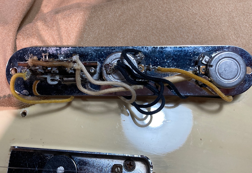 当機は1959年ボディに1962年製ネックがセットされ、ブロンドカラーにリフィニッシュされたプレイヤーズ・ビンテージテレキャスターと呼べる1本です。