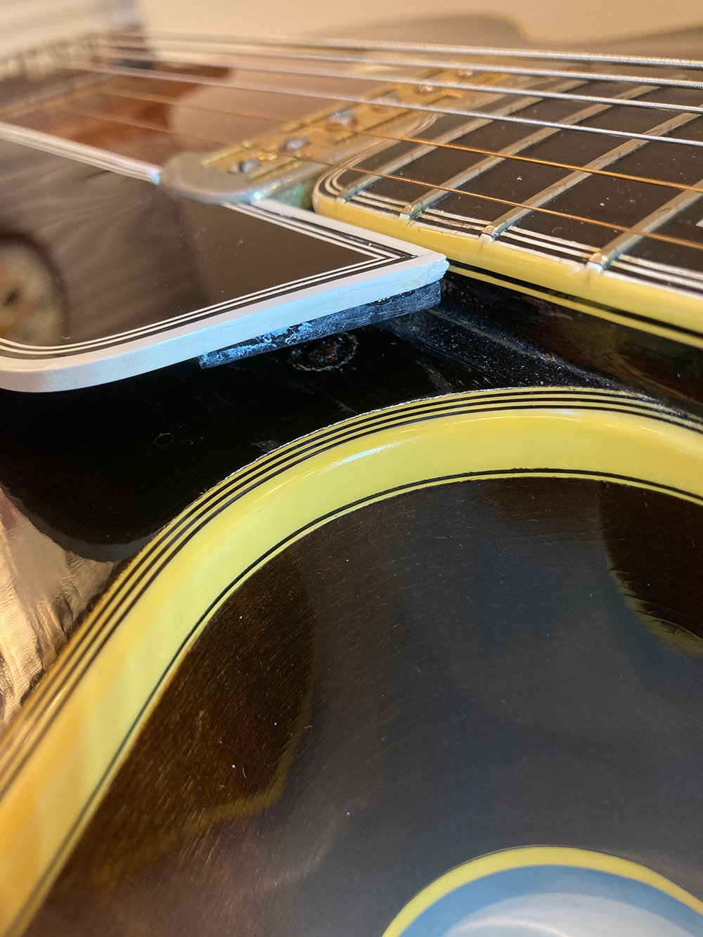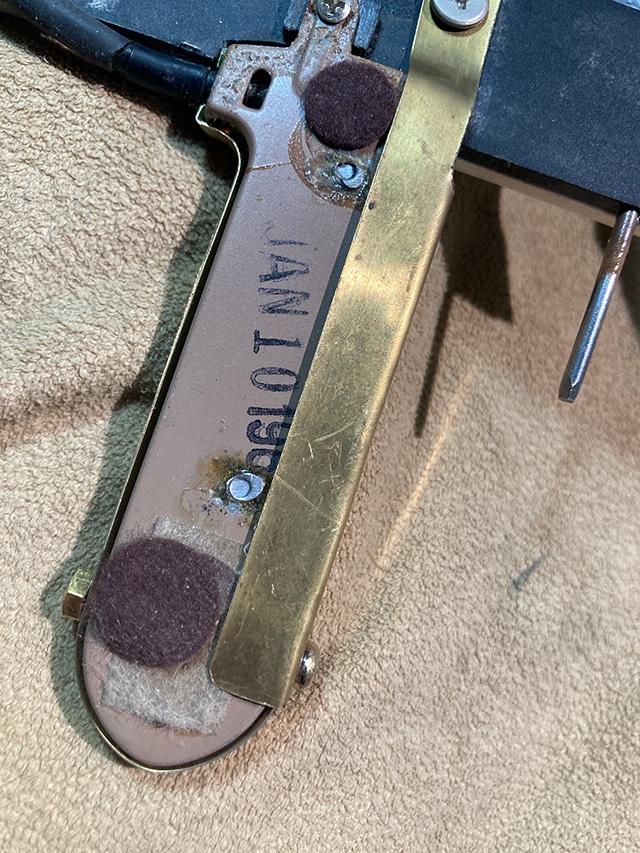 50年代前期の太めですが握り込みやすいしっかりとしたネック。60年代デイトのDeArmondピックアップが後付け、それに伴い1volume,1 tone仕様のピックガードに交換、ジャックはエンドピン・ジャック仕様になっており、非常に実用性の高い仕様となっております。Volumeポットデイトは66年となっておりますのでかなり以前に搭載された事が伺えます。