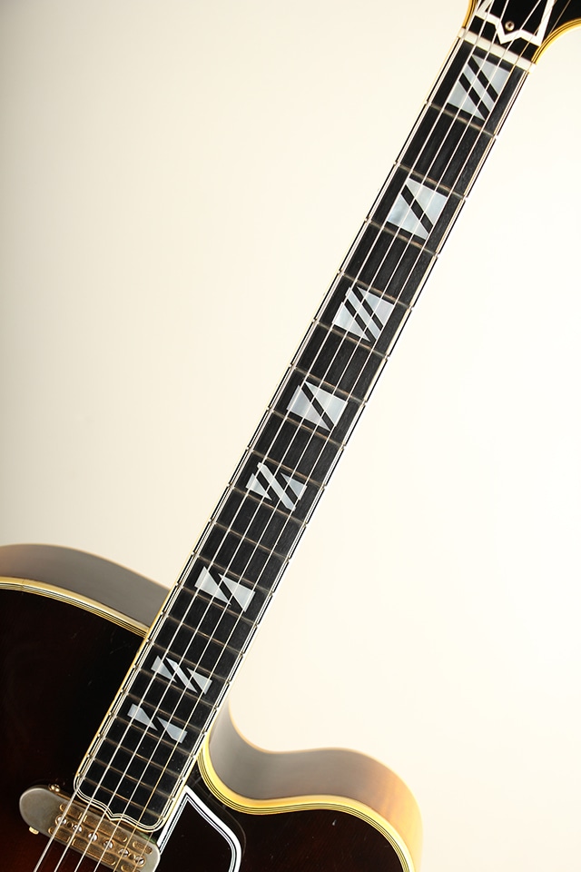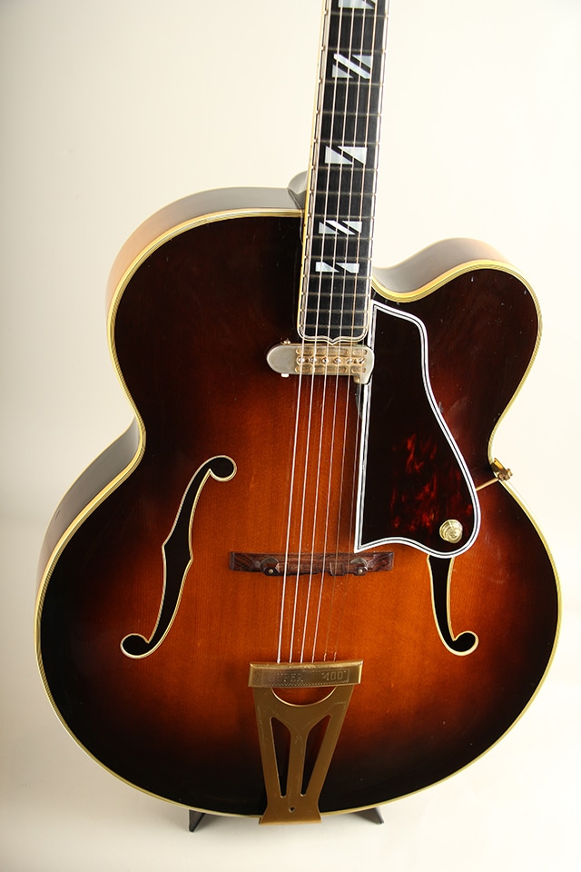L-5やJohnny Smithと並ぶGibson最高級アーチトップモデルSuper400。1934年に登場して以降、多くのギタービルダーにも大きな影響を与えた18インチサイズの圧倒的な存在感でGibsonフルアコを代表する最上位モデルです。