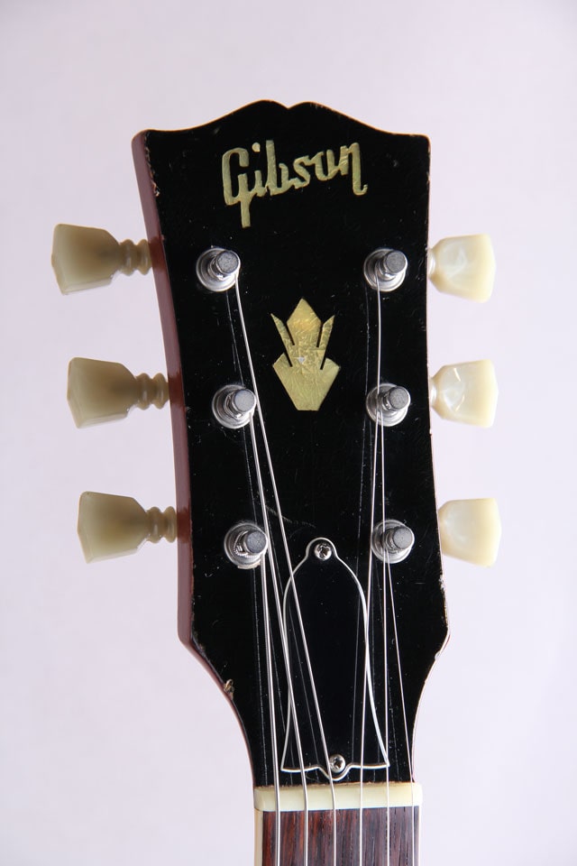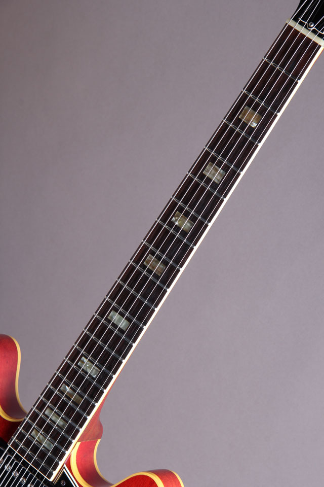 オリジナルのナンバード・ステッカードPAFから放たれる極上のセミアコトーン。ヴィンテージだからこその余分な倍音が削ぎ落されたサウンドですが太い芯の部分は健在。トラピーズ・テイルピースとナイロンサドルによる暖かなコンビネーションも魅力的な1本でございます。