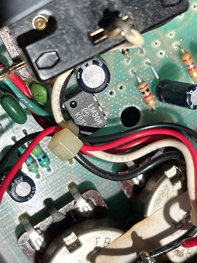 ポットデイトより88年製、MotorolaLM308Nが搭載されています。THE RAT(RAT1)とRAT2が並行して生産されていた過渡期の個体となりますが、このTHE RATはRAT2に比べ、高域が出すぎず、低域?中域に厚みがありがガツンと鳴るところが特徴的です。