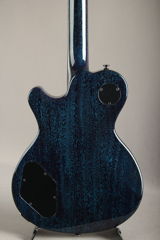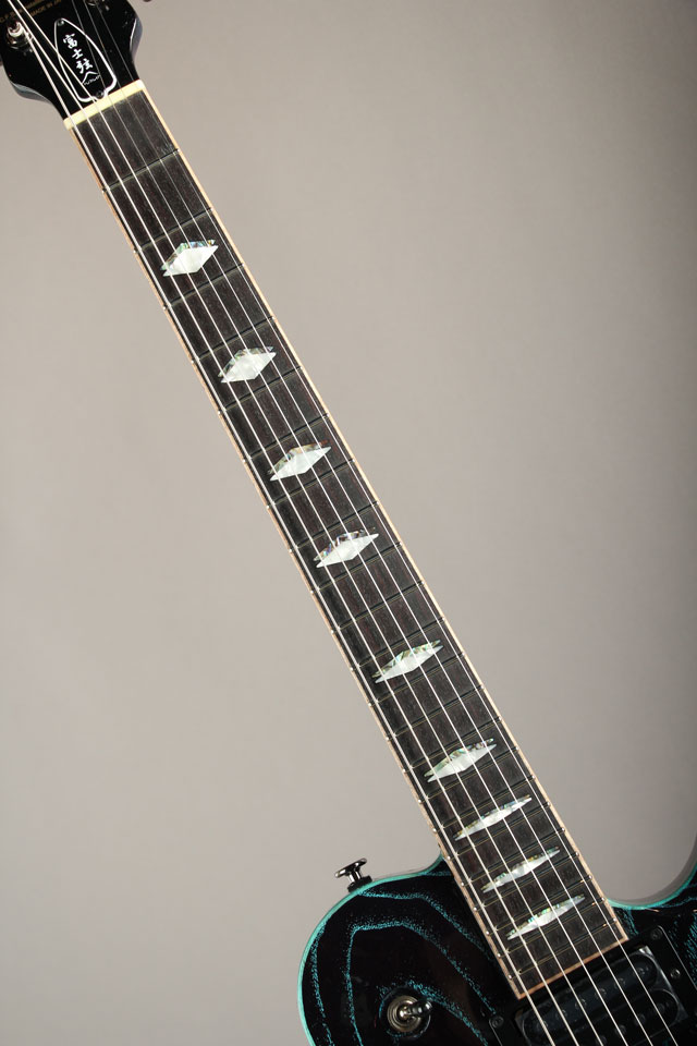 マホガニー材を基とし、ボディトップにはアッシュ材をチョイス。高度な技術で杢目に沿ってカラーリングを施したグラデーション・ブルーを全面仕上げた他にはないまさに1点物のEFLオーダーモデルです。
