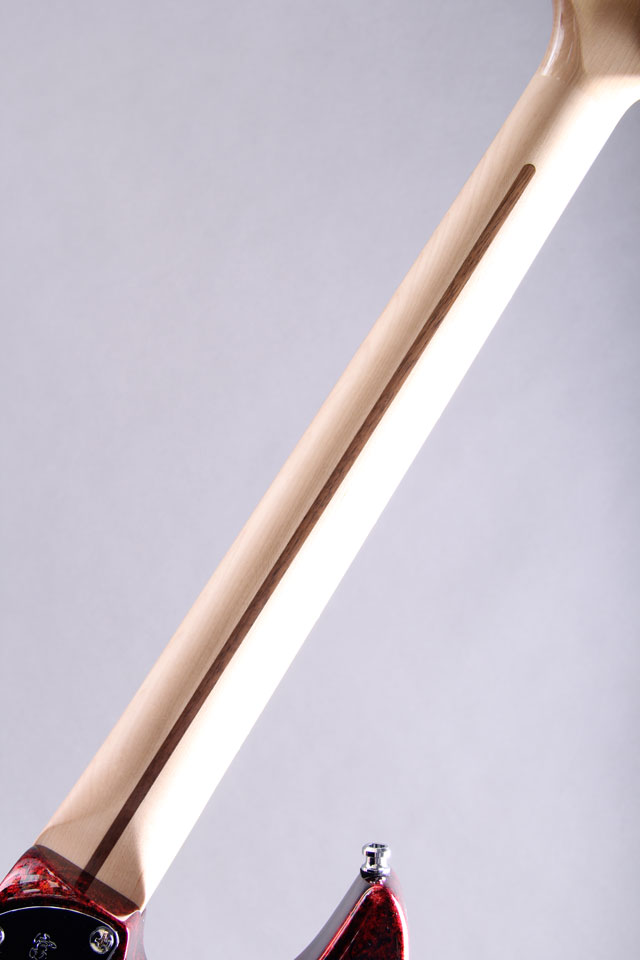 ネック材のメイプル材には反りなどの狂いが少ない、選りすぐられた”柾目”を採用。自社独自の乾燥設備・乾燥工程で狂いだしを行い、強度を上げ、ギターネックの素材として最適な状態にした後、加工されています。もちろん、サークルフレッティングシステム装備です。