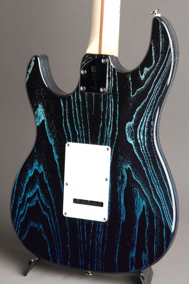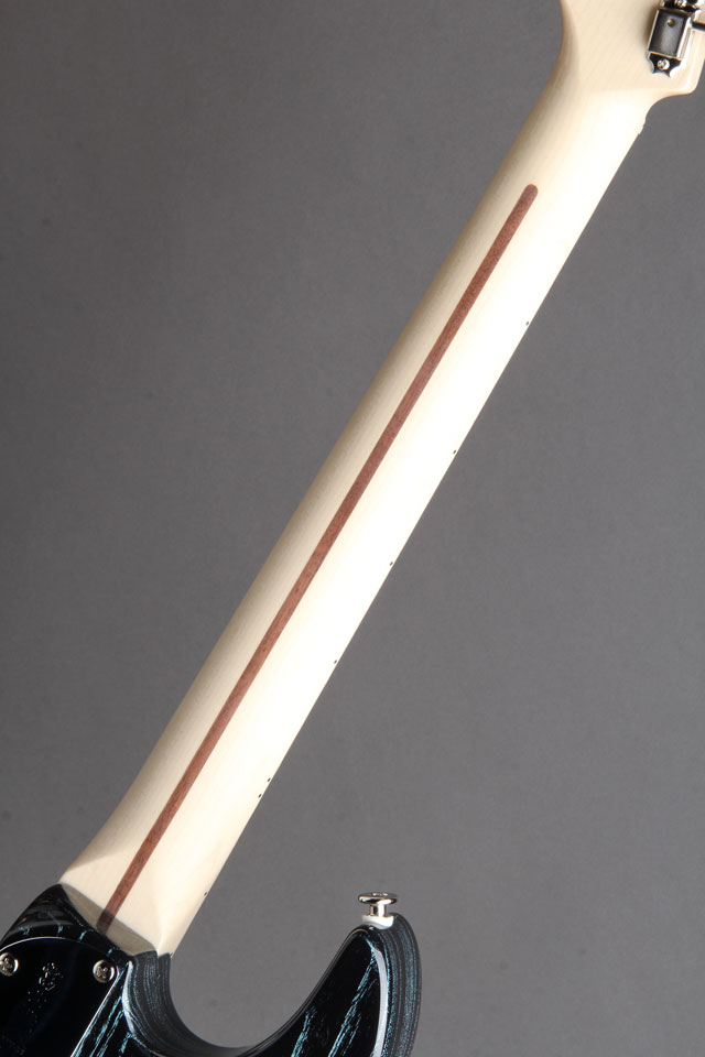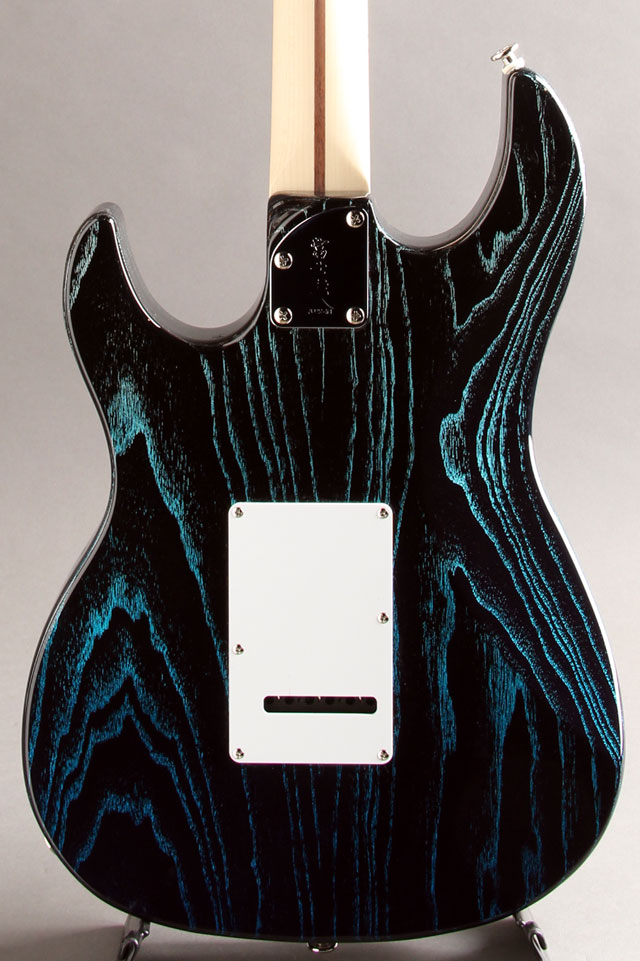 FUJIGENの塗装職人さんが高度な技術でアッシュの杢目に沿ってカラーリング。この仕様の塗装が出来る職人さんは極々限られた方のみの為、通常モデルよりもより時間をかけて製作されています。以前、贅沢にも弊店スタッフ希望のグラデーションカラーリングを濃淡ブルーでこんな感じ!と指定させて頂きました。そして、1本目は即売却となり、今回2本目を製作して頂きました。前回の1本よりもボディサイドの杢目がしっかりと出ており、渋い仕上がりになっています....!!