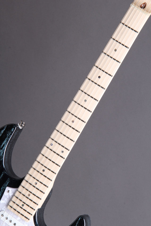 ネック材のメイプル材には反りなどの狂いが少ない、選りすぐられた”柾目”を採用。自社独自の乾燥設備・乾燥工程で狂いだしを行い、強度を上げ、ギターネックの素材として最適な状態にした後、加工されています。もちろん、サークルフレッティングシステム装備です。