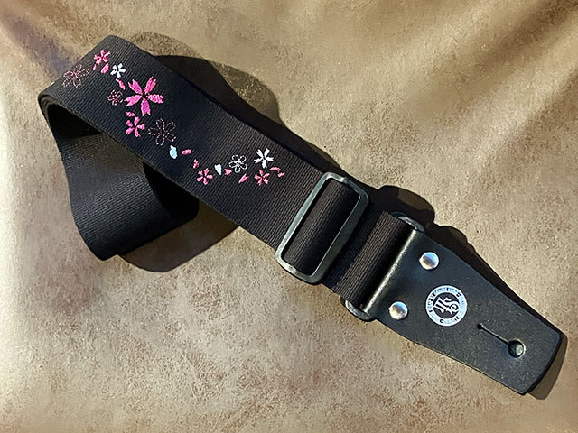 ブラックのストラップに、美しく舞う桜のイメージで彩られた刺繍デザイン。