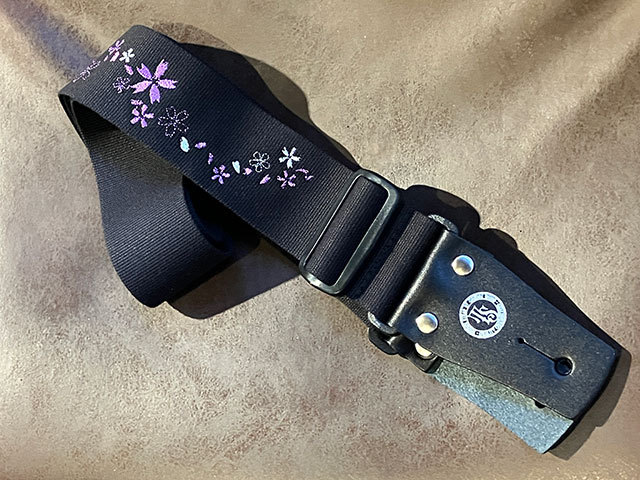 美しく舞う桜のイメージで彩られた刺繍デザイン。ブラックのストラップに、主張しすぎずでもステージ上でぱっと映える絶妙なこのデザインはGrande uomoならでは。