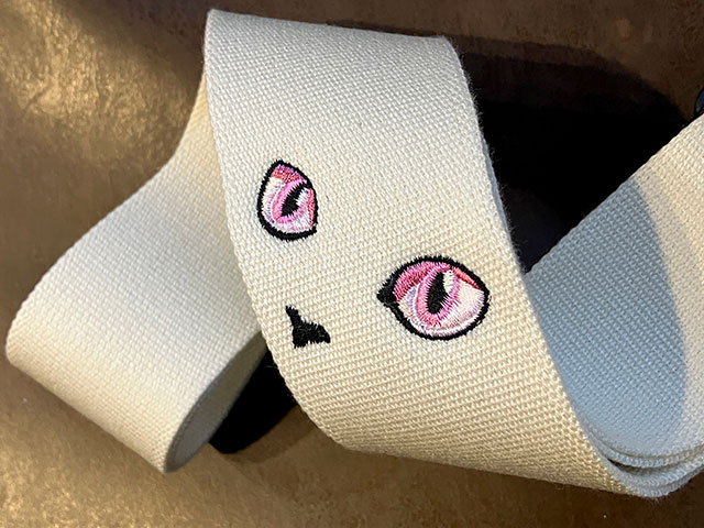 TENDER STRAPの人気ねこ宝石シリーズ、三木楽器限定モデル!レザーの部分まで真っ白ねこバージョン!!