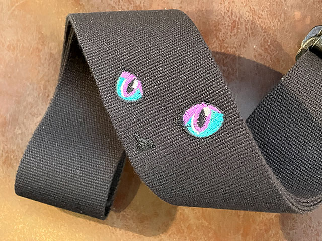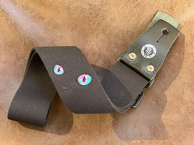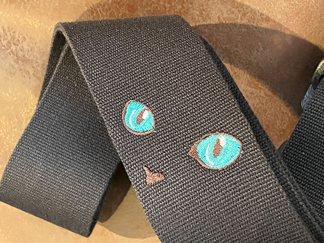 皆様の音楽ライフをより良くより快適に。厳選したレザーのみを採用し常に探究心を持ってレザーストラップをハンドメイドで製作する関西のブランドGrande uomoがプロデュースするカジュアルラインTENDER STRAP。 きゅるんと可愛いねこのお目々の刺繍を宝石をイメージしたカラーリングでデザインした人気シリーズ! ストラップ本体の素材には柔らかくて肩への馴染みの良いアクリル製を使用し、ベルト調整のバックル部分にはギターを傷つけにくいプラスティックパーツのものを採用しております。 また、ストラップピン取り付け部分には、しっかりとした本革を使う事により革がへたりにくくなっております。 ストラップの幅(肩にあたる部分) 5cm ストラップの調整可能な長さ【ストラップピンの取付穴の間の長さ】 約85cm~140cmまで調整可能 ストラップピンの取り付け穴のサイズ 8mm ※画像はサンプルです。ハンドメイド製品のため、1つ1つ刺繍やレザーの風合いが異なる場合がございます。予めご了承くださいませ。