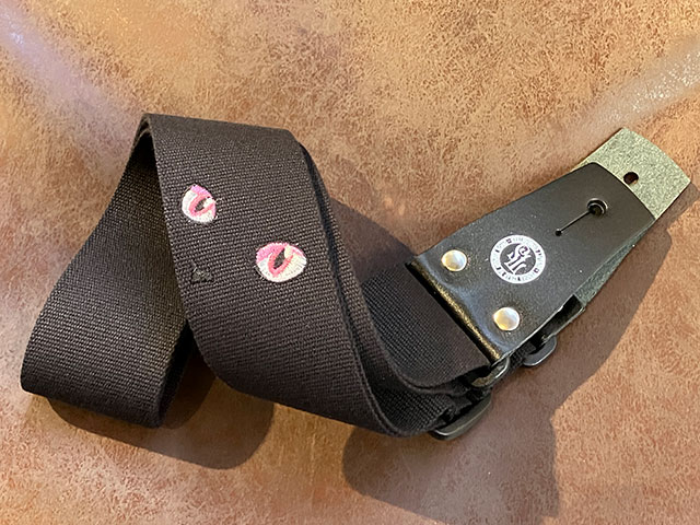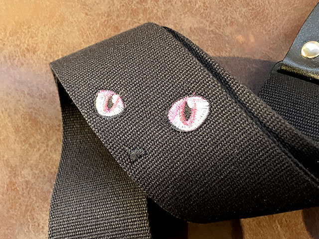 皆様の音楽ライフをより良くより快適に。厳選したレザーのみを採用し常に探究心を持ってレザーストラップをハンドメイドで製作する関西のブランドGrande uomoがプロデュースするカジュアルラインTENDER STRAP。 きゅるんと可愛いねこのお目々の刺繍を宝石をイメージしたカラーリングでデザインした人気シリーズ! ストラップ本体の素材には柔らかくて肩への馴染みの良いアクリル製を使用し、ベルト調整のバックル部分にはギターを傷つけにくいプラスティックパーツのものを採用しております。 また、ストラップピン取り付け部分には、しっかりとした本革を使う事により革がへたりにくくなっております。 ストラップの幅(肩にあたる部分) 5cm ストラップの調整可能な長さ【ストラップピンの取付穴の間の長さ】 約85cm~140cmまで調整可能 ストラップピンの取り付け穴のサイズ 8mm ※画像はサンプルです。ハンドメイド製品のため、1つ1つ刺繍やレザーの風合いが異なる場合がございます。予めご了承くださいませ。