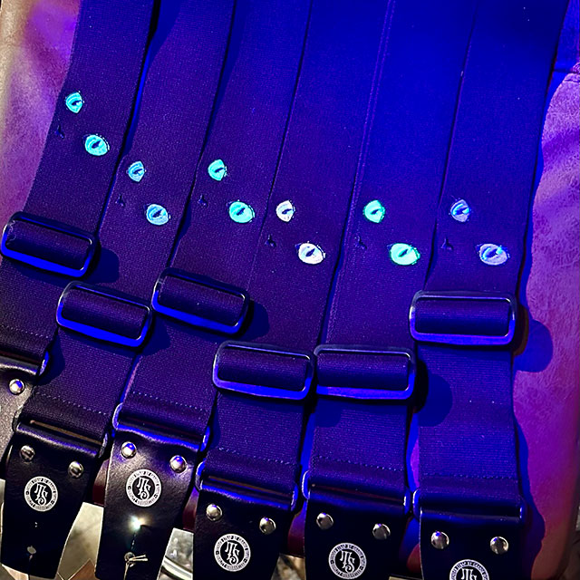 ブラックライトを浴びると更に光るので、ステージ上できりりと光ります!!