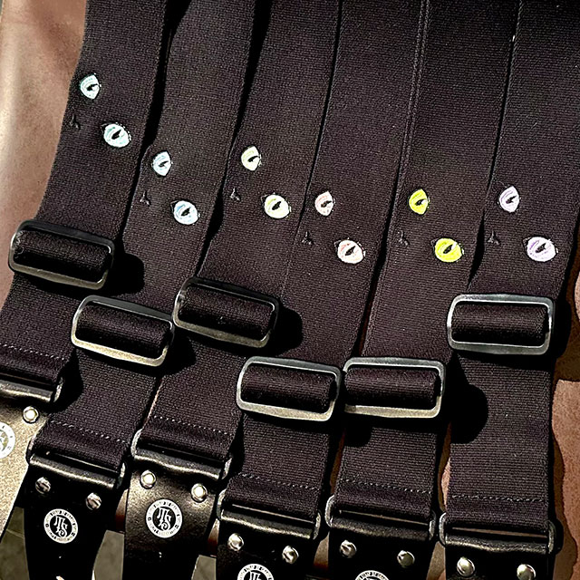 ギター・ベースストラップ専門店 Grande uomoが監修するカジュアルラインストラップブランドTENDER STRAP! プレゼントに、自分へのご褒美に!きらっと光る猫の目が可愛いストラップ TS2-AC ねこ。 人気のこちらのモデルの、★三木楽器限定★ネオンキャットシリーズ!! 蓄光の糸を使ってお目々がデザインされていますので、暗いところで光ります。 ブラックライトを浴びると更に光るので、ステージ上できりりと光ります!! ストラップ本体の素材には柔らかくて肩への馴染みの良いアクリル製を使用し、ベルト調整のバックル部分にはギターを傷つけにくいプラスティックパーツのものを採用しております。 また、ストラップピン取り付け部分には、しっかりとした本革を使う事により革がへたりにくくなっております。 ストラップの幅(肩にあたる部分) 5cm ストラップの調整可能な長さ【ストラップピンの取付穴の間の長さ】 約85cmから140cmまで調整可能 ストラップピンの取り付け穴のサイズ 8mm ※画像はサンプルです。ハンドメイド製品のため、1つ1つ刺繍やレザーの風合いが異なる場合がございます。予めご了承くださいませ。