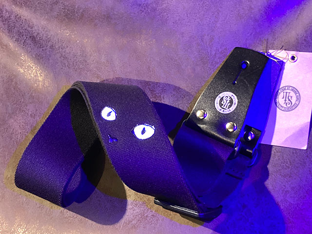 三木楽器限定モデル!暗闇でお目々が光る!夜行性ねこストラップ!ブラックライトを浴びると更に光るので、ステージ上できりりと光ります!!