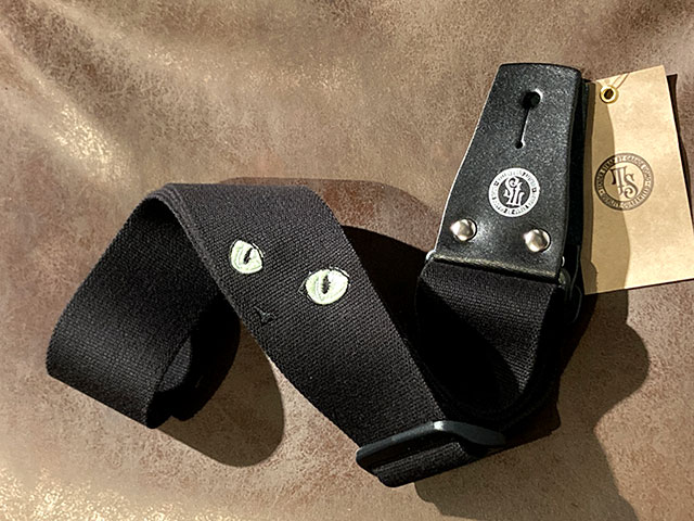 ギター・ベースストラップ専門店 Grande uomoが監修するカジュアルラインストラップブランドTENDER STRAP! プレゼントに、自分へのご褒美に!きらっと光る猫の目が可愛いストラップ TS2-AC ねこ。 人気のこちらのモデルの、★三木楽器限定★ネオンキャットシリーズ!! 蓄光の糸を使ってお目々がデザインされていますので、暗いところで光ります。 ブラックライトを浴びると更に光るので、ステージ上できりりと光ります!! ストラップ本体の素材には柔らかくて肩への馴染みの良いアクリル製を使用し、ベルト調整のバックル部分にはギターを傷つけにくいプラスティックパーツのものを採用しております。 また、ストラップピン取り付け部分には、しっかりとした本革を使う事により革がへたりにくくなっております。 ストラップの幅(肩にあたる部分) 5cm ストラップの調整可能な長さ【ストラップピンの取付穴の間の長さ】 約85cmから140cmまで調整可能 ストラップピンの取り付け穴のサイズ 8mm ※画像はサンプルです。ハンドメイド製品のため、1つ1つ刺繍やレザーの風合いが異なる場合がございます。予めご了承くださいませ。