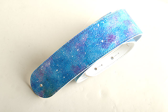 さらに、こちらはガラスコーティングが施されておりますので、繊細なレザーでも汚れにくくステージでも安心してお使いいただけます。この特別なコーティングが施された証明として、虹色に輝くブランドロゴがプリントされています。