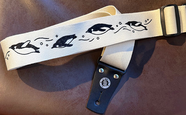 ストラップ本体の素材には柔らかくて肩への馴染みの良いアクリル製を使用し、ベルト調整のバックル部分にはギターを傷つけにくいプラスティックパーツのものを採用しております。