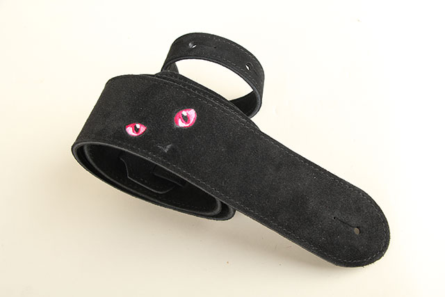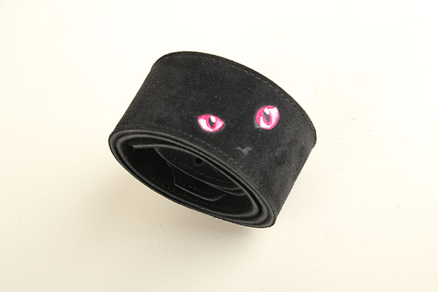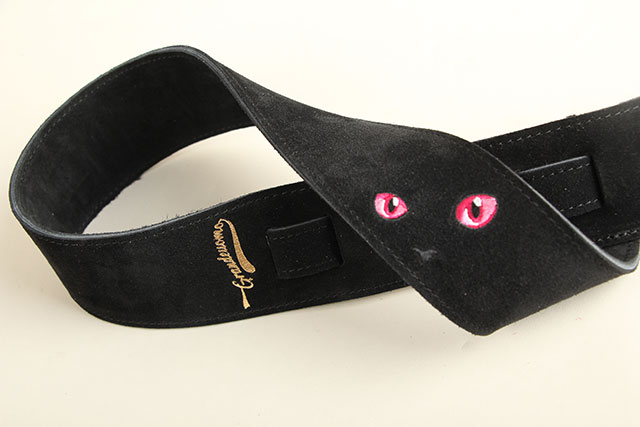 表裏どちらもG-Standardシリーズの極上イタリアンスエード、可愛いお目々の刺繍が入ったもふもふ黒ネコのイメージで仕上げられたレザーストラップ!