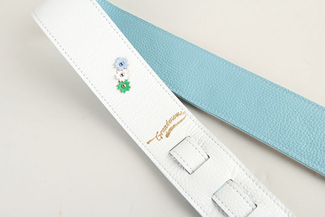 桜がふわっと舞っているようなストラップをスタッズのワンポイントを入れて作ってほしい!そんな希望から、Grande uomoさんの素晴らしすぎるアイディアで特別にデザインしてくださった弊店オーダーモデルです。