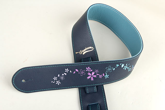 表裏にG-Standardシリーズの柔らかな質感の国産天然シュリンクレザーを採用。桜の花びらが月夜に舞うイメージでデザインされた、美しい刺繍が施されたレザーストラップです!