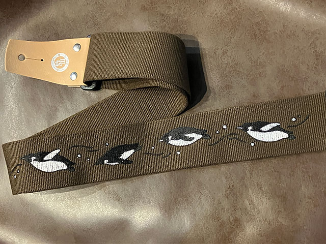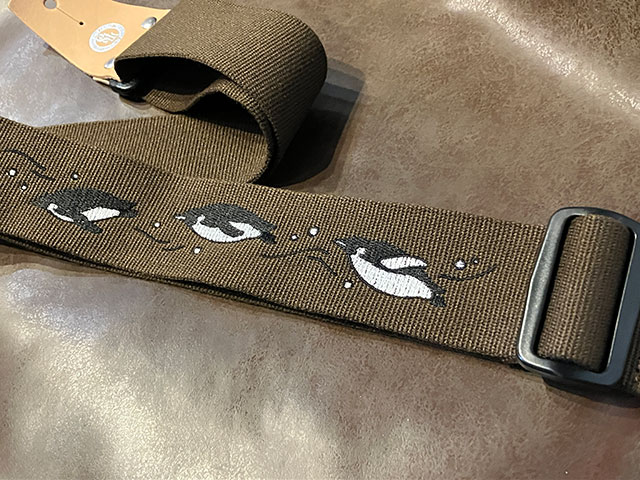 ストラップ本体の素材には柔らかくて肩への馴染みの良いアクリル製を使用し、ベルト調整のバックル部分にはギターを傷つけにくいプラスティックパーツのものを採用しております。