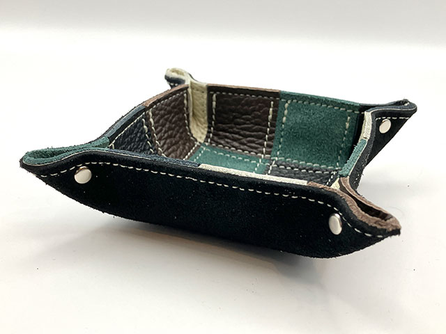 グリーンカラーを基調にシュリンクレザーとスエードレザーを組み合わせたパッチワークデザイン!