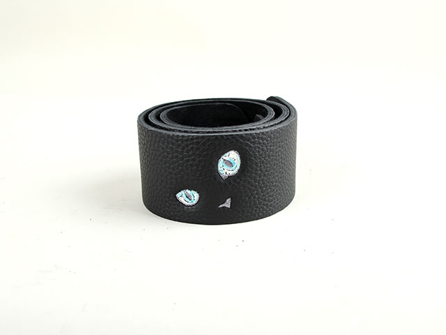 表側にはG-Standardシリーズの柔らかな質感の国産天然シュリンクレザーを採用、裏側には肌触りの良いイタリアンスエードレザーを用いることで、持った瞬間に引き込まれるような安心感を確保しつつも、親しみやすい刺繍デザインも施し、ずっと使いたいと思える上質なストラップとして完成しています。こちらのモデルには淡い色彩のラリマーカラーのお目々をチョイスしました。