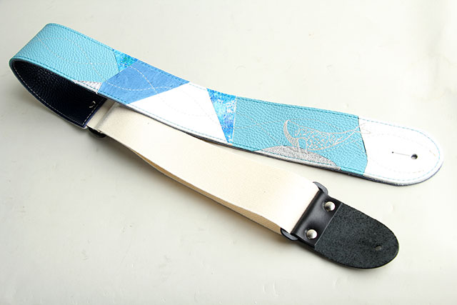 ギターに付けて演奏しているときは、角度によって印象が変わるのも楽しみのひとつ!1つのストラップなのにいろんな表情を魅せてくれます。さらに、柔らかな触り心地のレザーが裏側にも使用されておりこのストラップの魅力をUPさせています。調整部はアクリル製の布を使用。パーツには楽器に傷が付きにくいような配慮がしてあります。