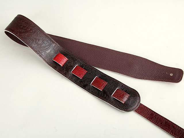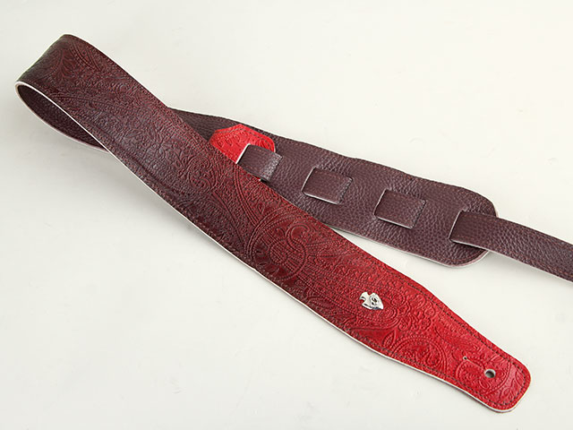 楽器を華やかに彩る、CS G-Premium Paisley Hand Dye #2は、手染めによって深みのあるダークレッドからカカオブラウンへのグラデーションにDark Cherryカラーで染色され、落ち着いた雰囲気のデザインに仕上げられています。裏側にはブラウンカラーのシュリンクレザーが採用されており、扱いやすい1本に仕上がっています。インナークッションも入った至れり尽くせりな豪華仕様となっており、肩への負担に不安がある方にもおすすめの1本です。