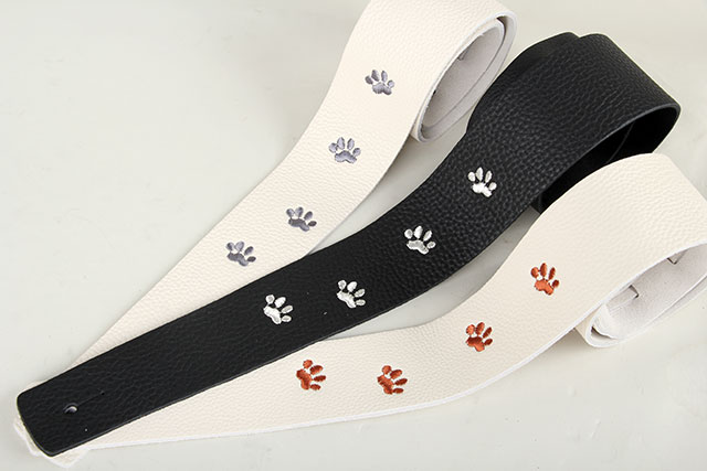 弊店スタッフオーダーの、かわいい足あと刺繍デザイン!アイボリーレザーにシルバーの刺繍をデザインすることで、シンプルながらもワンポイントが光る、遊び心のあるデザインに仕上がっています。