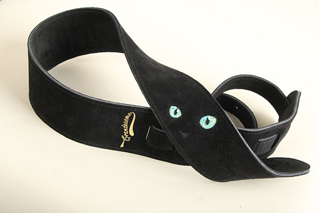 国産ハンドメイドストラップブランドGrande uomo。厳選したレザーのみを採用し常に探究心を持ってレザーストラップをハンドメイドで製作する関西のブランドです。 本革レザーのストラップによくある硬くて重たいイメージをびっくりするほど覆すGrande uomoのストラップは、こだわり抜いたレザーしか扱わず、丁寧な仕上げと美しいデザイン、そして常に探究心を高く持ち、これまでになかったアイディアで、ギタリスト / ベーシストを虜にしているブランドです。 表裏どちらもG-Standardシリーズの極上イタリアンスエード、可愛いお目々の刺繍が入ったもふもふ黒ネコのイメージでで仕上げられたレザーストラップ! 本革レザーストラップの概念を覆す、驚くほどに柔らかくしっとりした手触りのストラップです。 写真のように丸めると、ころんとまとまるくらいに柔らかいレザーで、楽器に傷が入る心配もなく安心してお使いいただけます。 表側の革の種類 : イタリアンスエード Black 裏側の革の種類 : イタリアンスエード Black ステッチカラー:ブラック ステッチパターン : シングル 長さ調節範囲: ストラップの長さ(穴から穴) :約109~119cm エンド側のスリットは5cm間隔で穴が3つ空いていますのでそちらで微調整が可能です。 ストラップの幅(肩にあたる部分):6cm ストラップ穴:通常タイプ(6mm) ※特にラッカー塗装の楽器へは色移り等の可能性があります。 ※革は天然皮革の為、素材の特性上、キズや擦れ、シワなどがございます。ご理解いただきました上ご購入くださいませ。