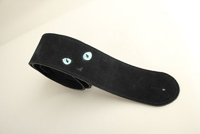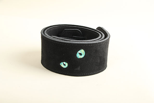 極上イタリアンスエード、可愛いお目々の刺繍が入ったもふもふ黒ネコのイメージで仕上げられたレザーストラップ!