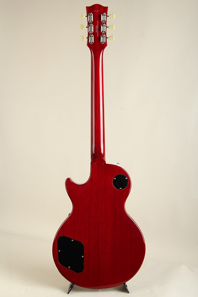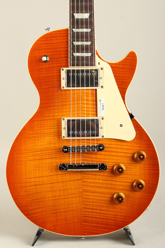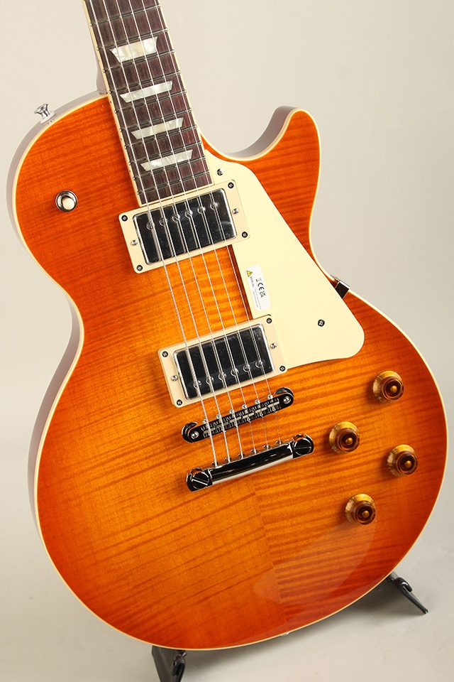 当モデルは、フレイムメイプルの化粧板+メイプルボディトップ、ローズウッド指板、フェイデッドチェリーバーストカラーという組み合わせ。ボディをチェンバー構造にすることで軽量化を図り、近年のプレイスタイルにマッチしています。