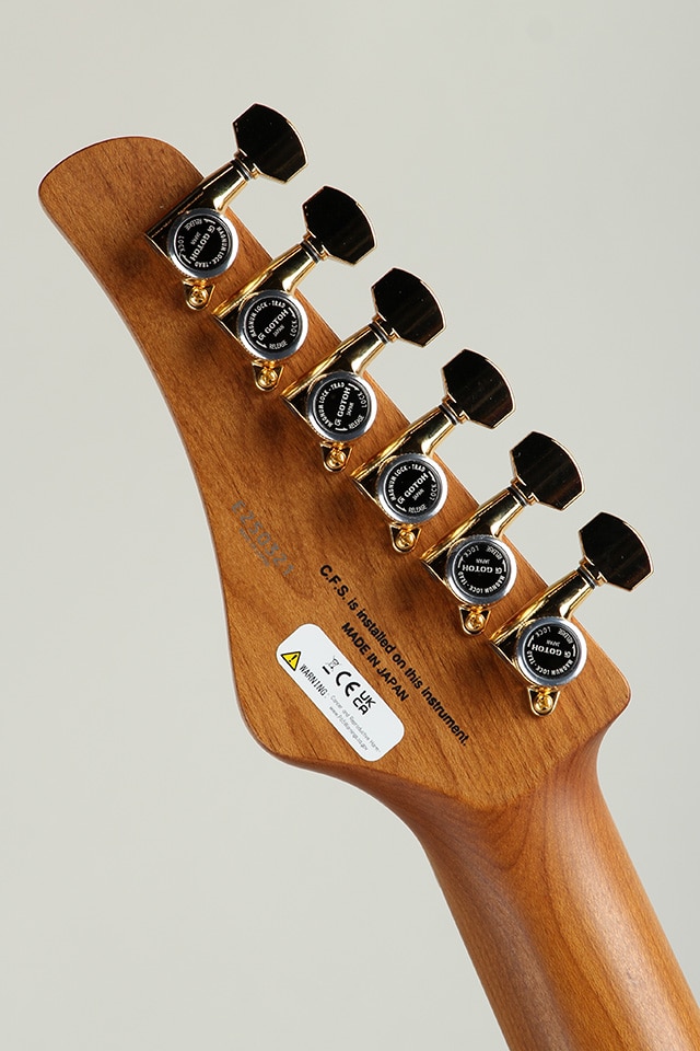 フレットにはステンレスジャンボフレットを採用されており、優れた耐久性と滑らかなタッチにより、長期間にわたり安定した演奏性を維持します。さらに、ハイポジションまでストレスなく演奏できる「ラウンドカットヒール」、ポジション移動のしやすさとコード感の両立を実現する「コンパウンドラディアス指板」など、長年の製作経験から培われたフジゲンの技術が随所に投入されています。ストリングリテイナーは、3弦にも適切なテンションを与え、不要な共振を抑制。これにより、音の立ち上がりが明瞭で、クリアかつ芯のあるサウンドを実現しています。