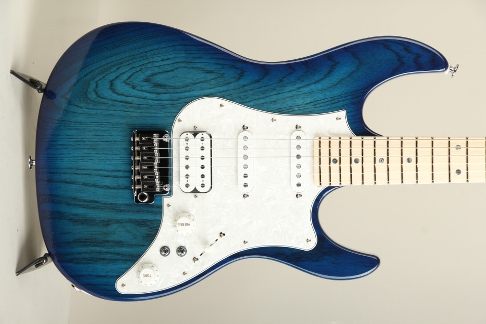 当モデルは、アッシュボディ、メイプル指板、人気のシースルーブルーバーストカラーで塗料はラッカーをを採用したスポット生産モデルの限定生産品です。